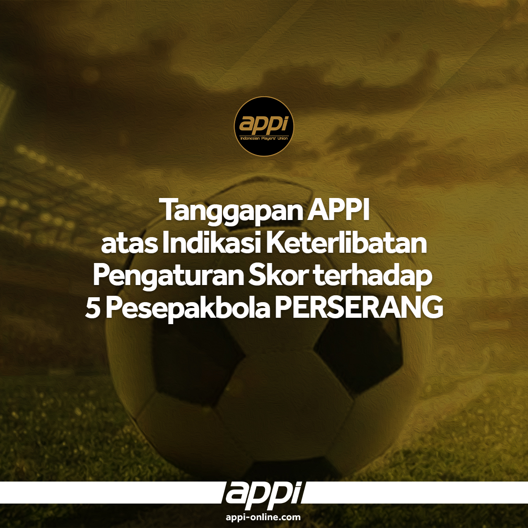 Jakarta, 29 Oktober 2021 – Responding to indications of the involvement of 5 (five) professional footballers from the Perserang Club in an effort to manipulate the matches (match-fixing) which resulted in the termination of the employment relationship between Perserang Club and the players involved, APPI has communicated and coordinated with the relevant parties. Until now, APPI is still continuing to explore further information regarding the truth of this matter.